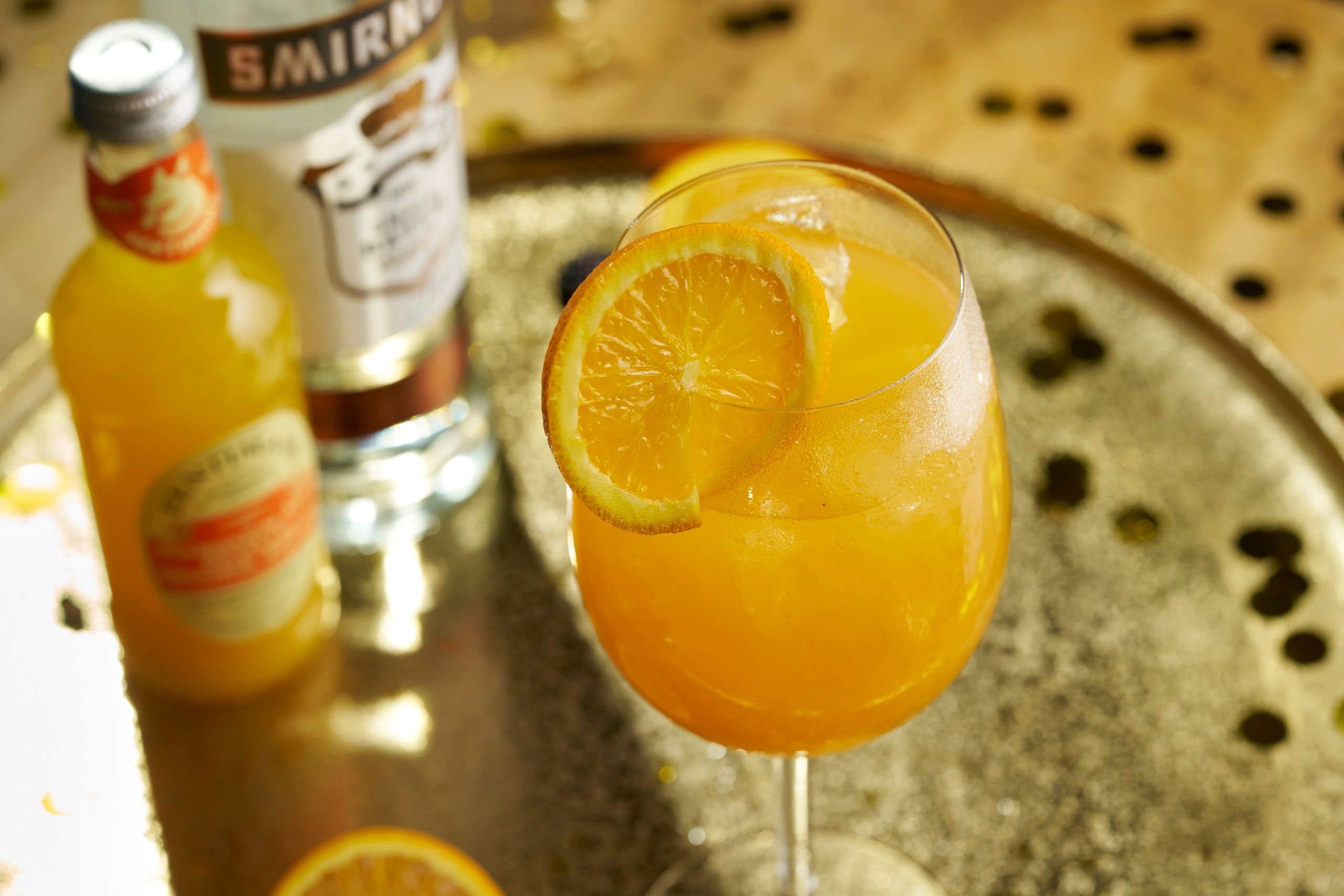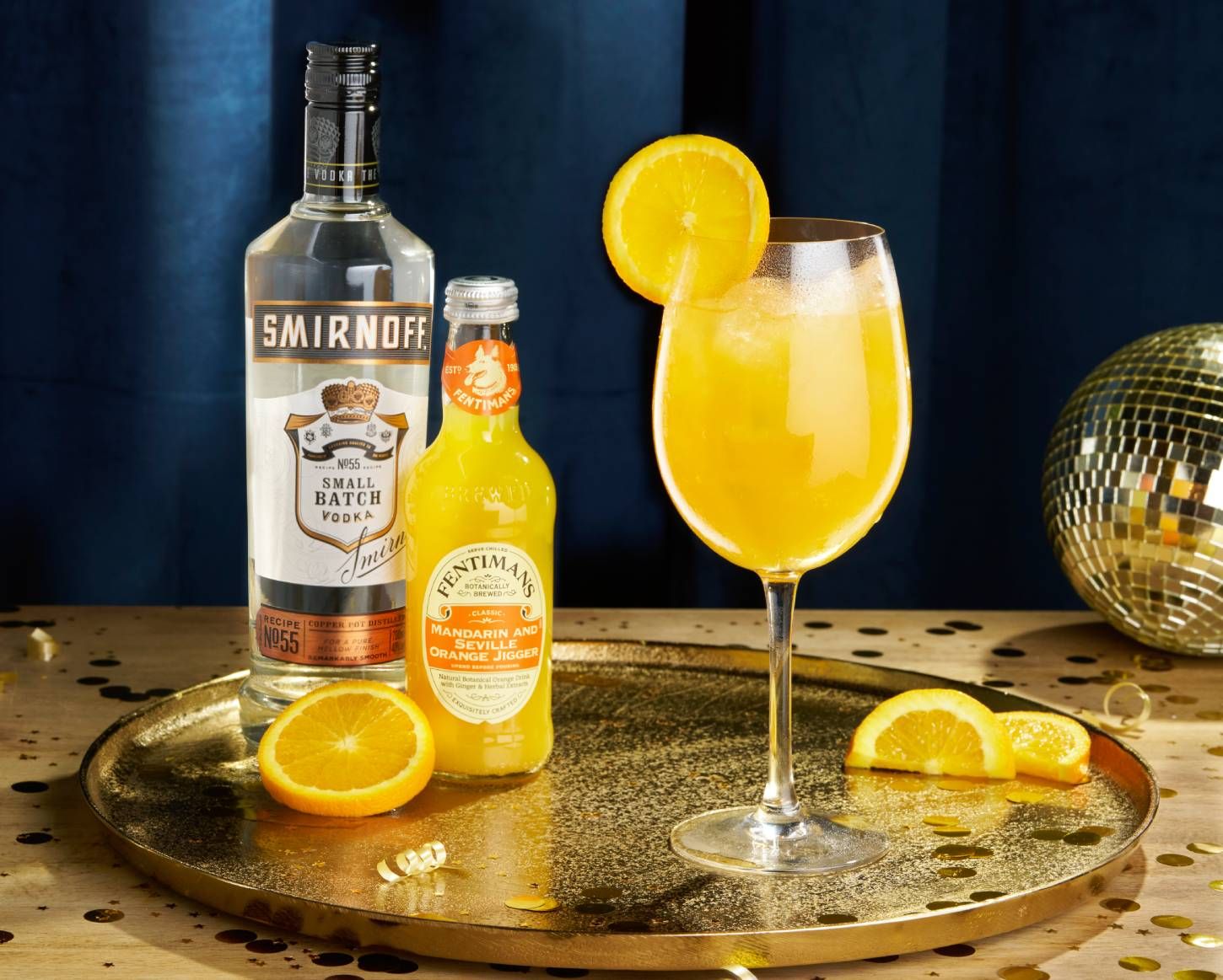 Elegant yet mischievous, just like her name. Smirnoff Black Vodka and Fentimans Mandarin & Seville Orange Jigger blend in a sharp-sweet swirl of citrus sophistication, with a dash of bitters and a gentle squeeze of lime. This striking beauty is finished with an orange wheel atop the glass.