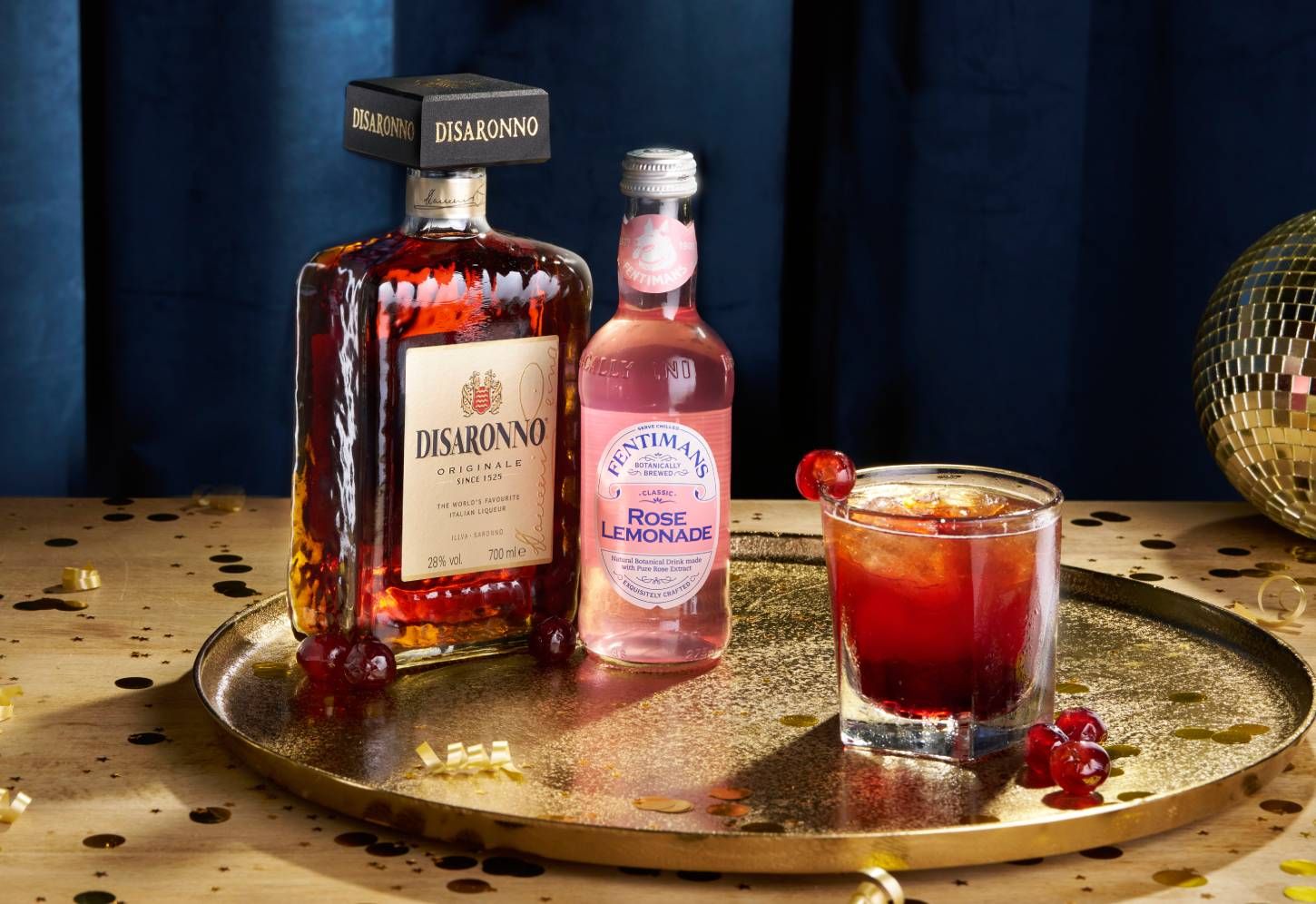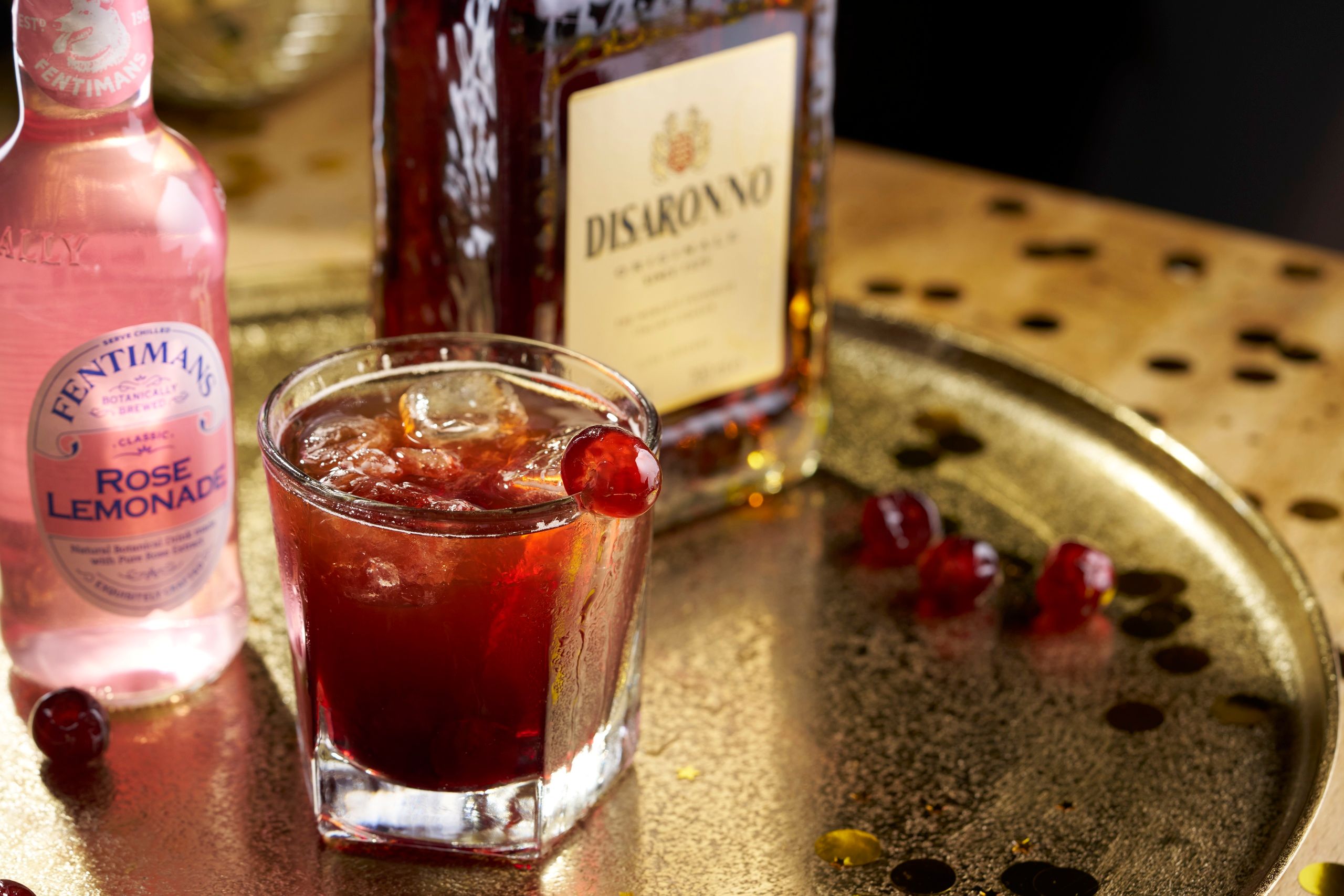 A sweet symphony of Disaronno and Crème de Mûre lifted by Fentimans Rose Lemonade – a nod to the classic cherry bakewell with a refreshing winter twist. Finished with a dash of bitters and glacè cherries for a hint of nostalgia and sparkle.